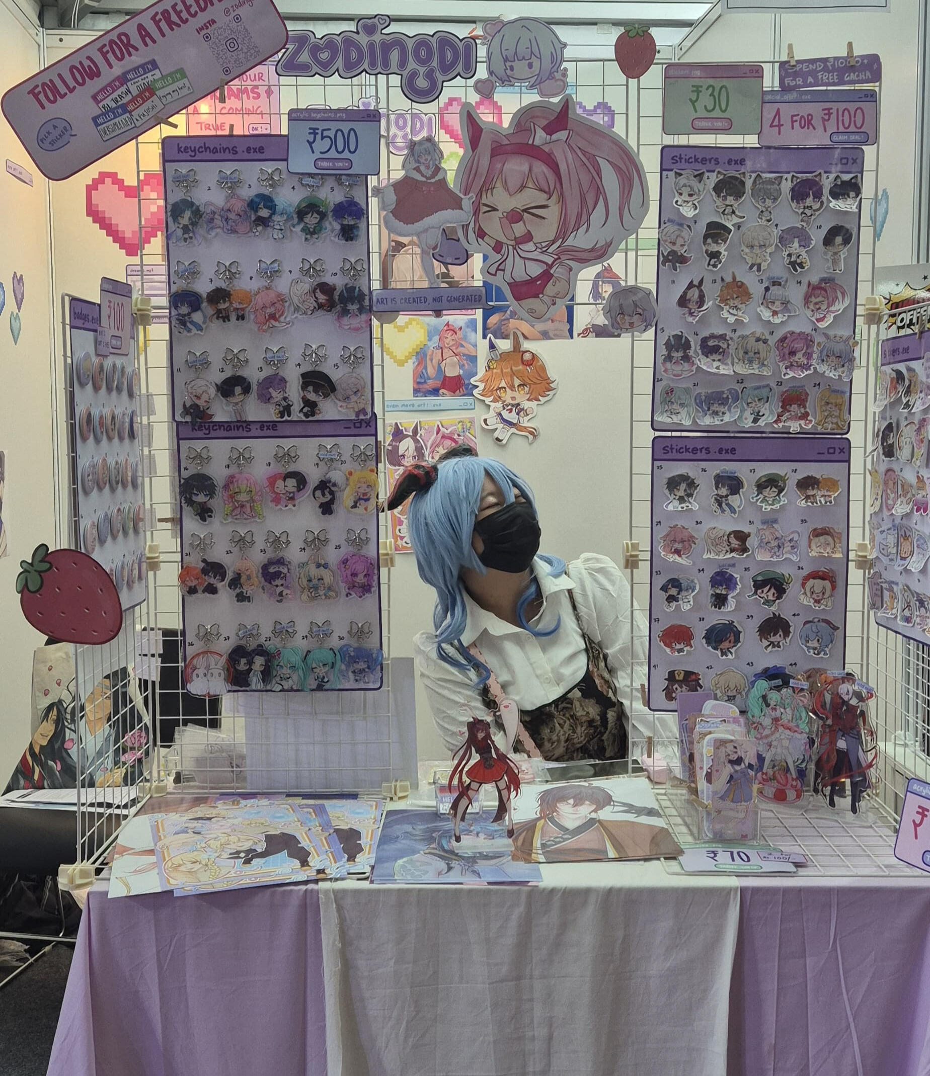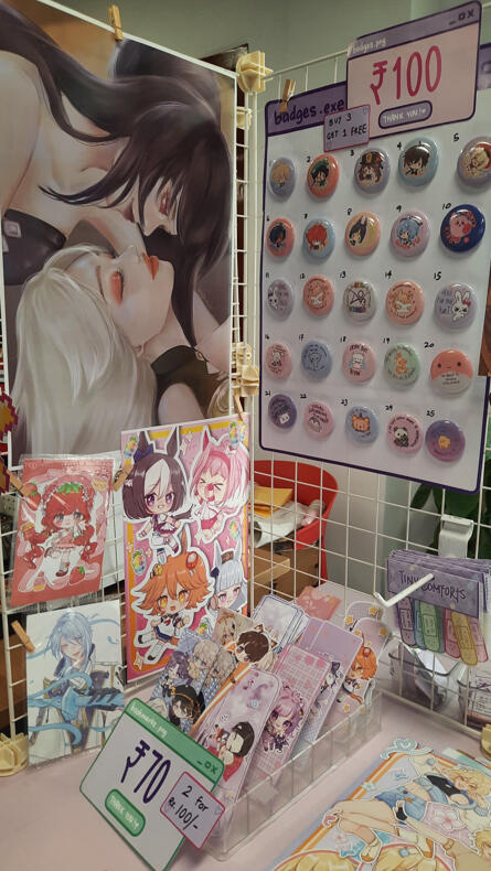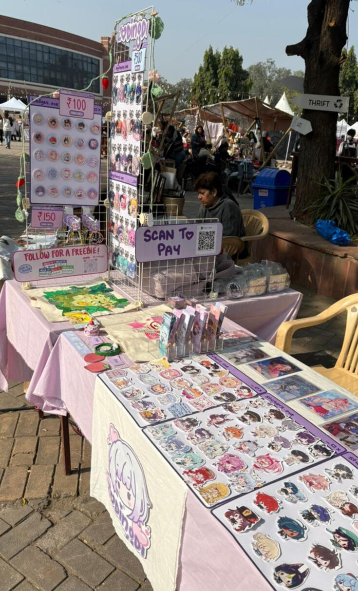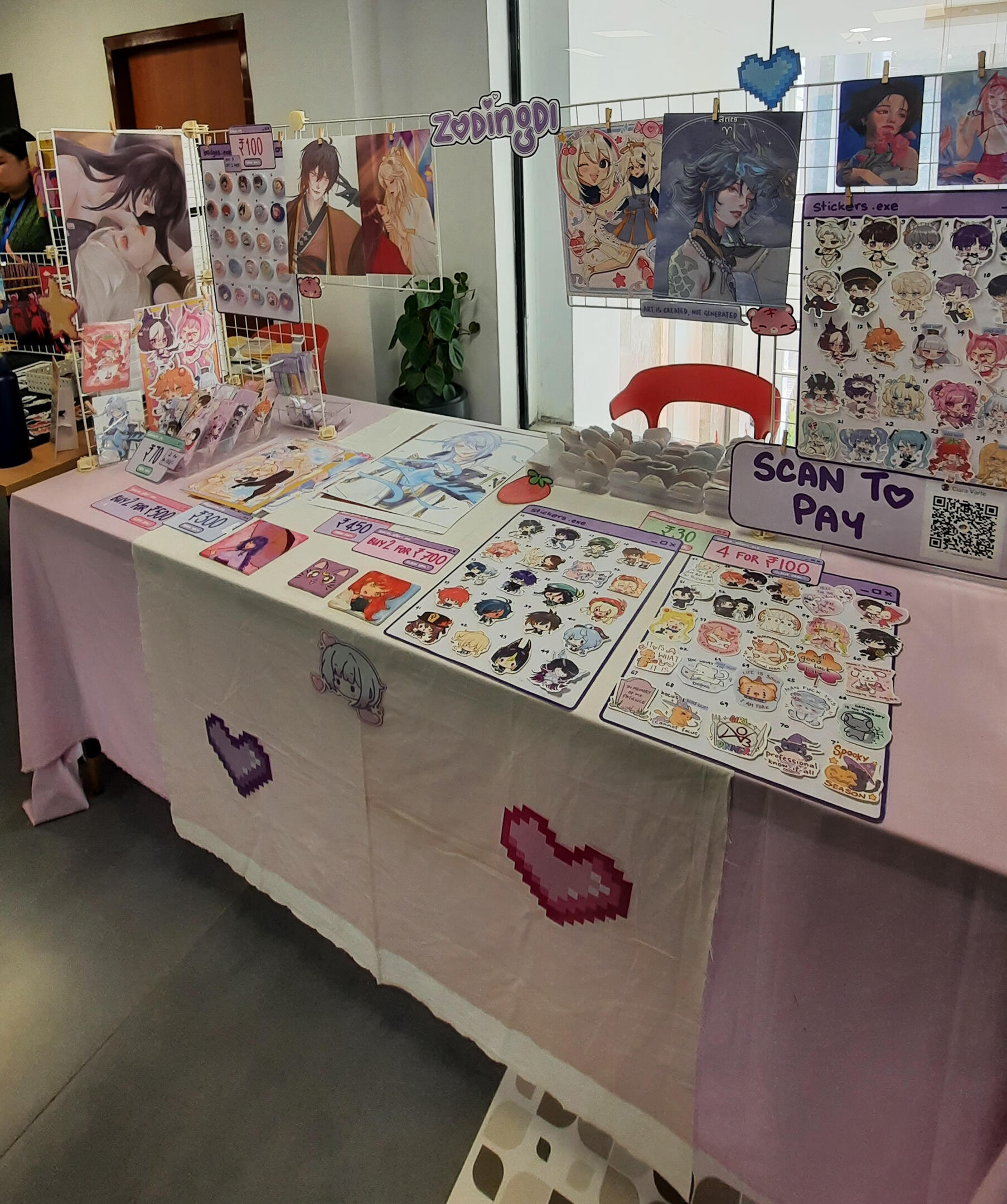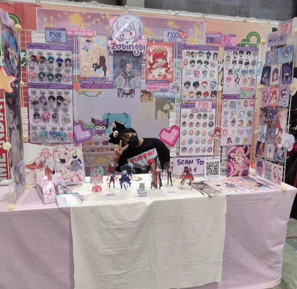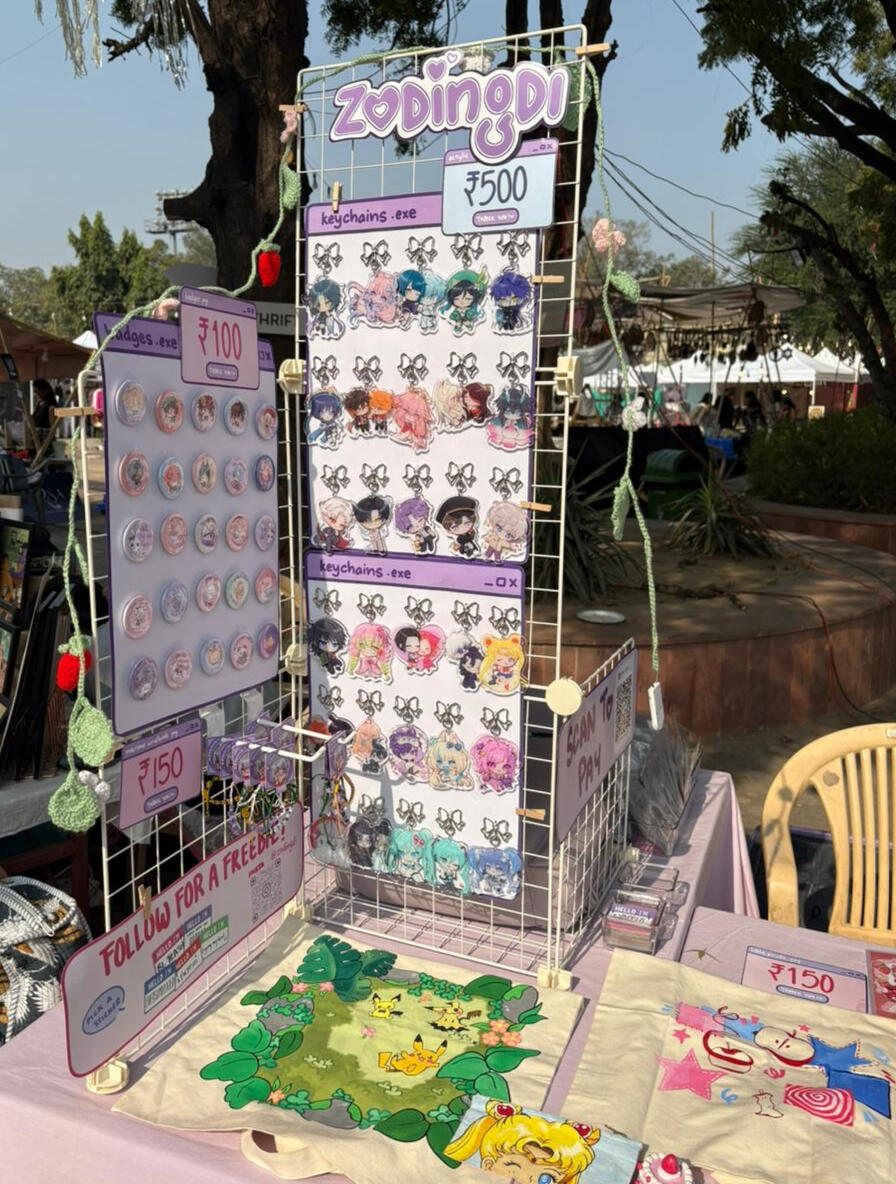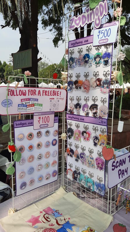 Hello! I'm Lala (zodingdi) and I've been actively exhibiting in artist alleys all over India since 2025! I exclusively feature 100% self-made artworks - both original illustrations and fanart of different anime, games, etc.here's some info about my work exhibited at fests, cons and artist alleys: