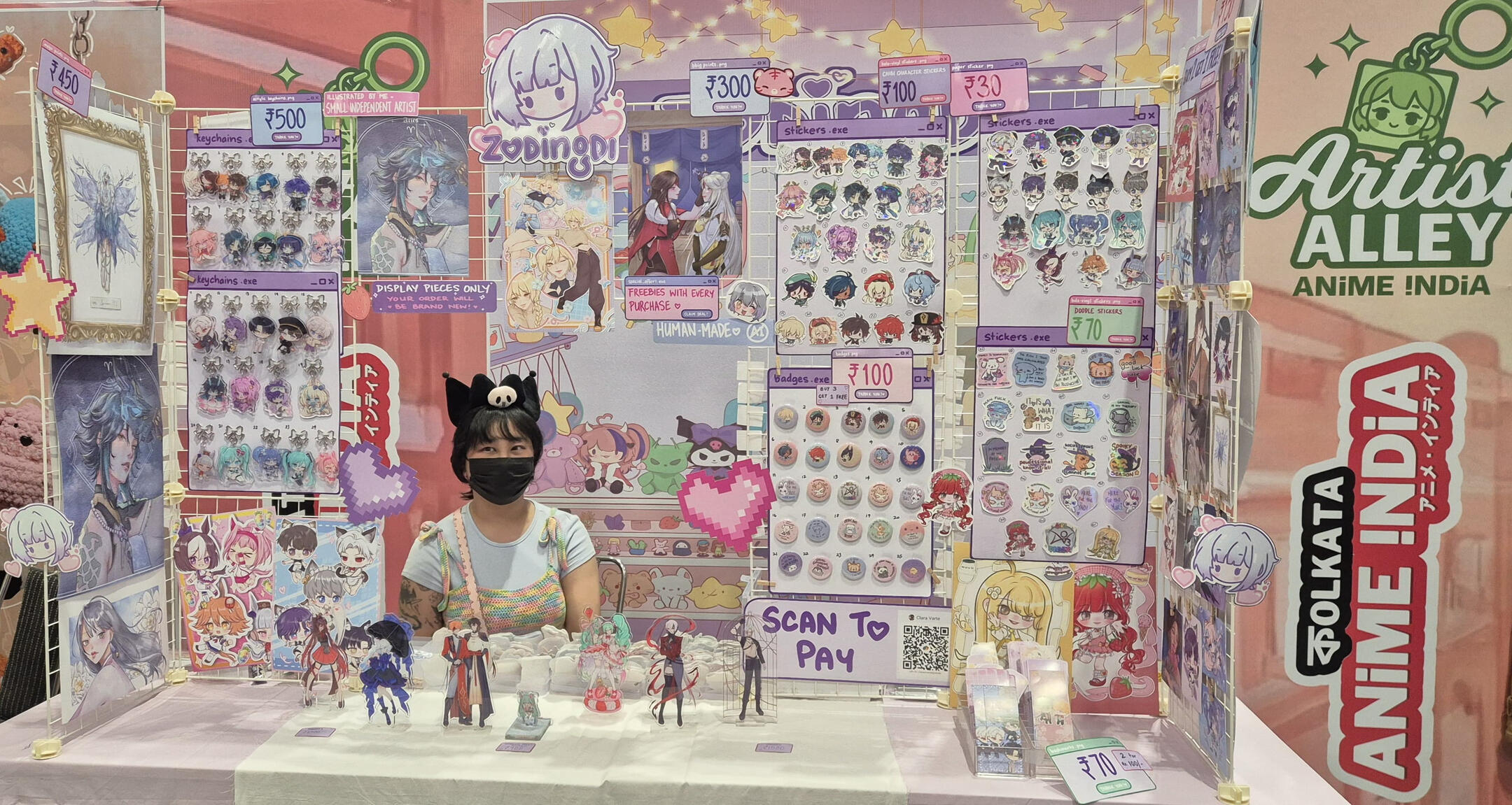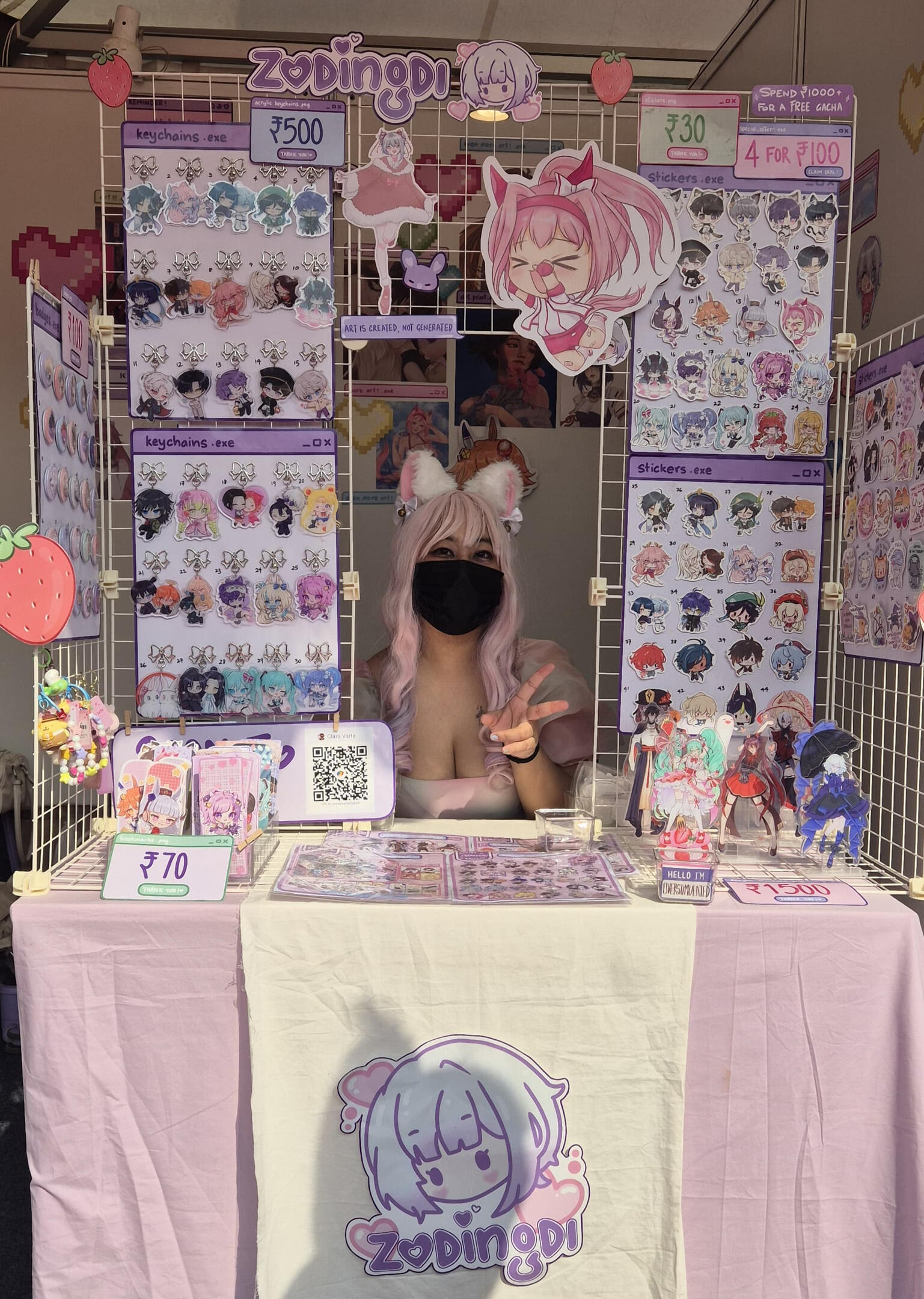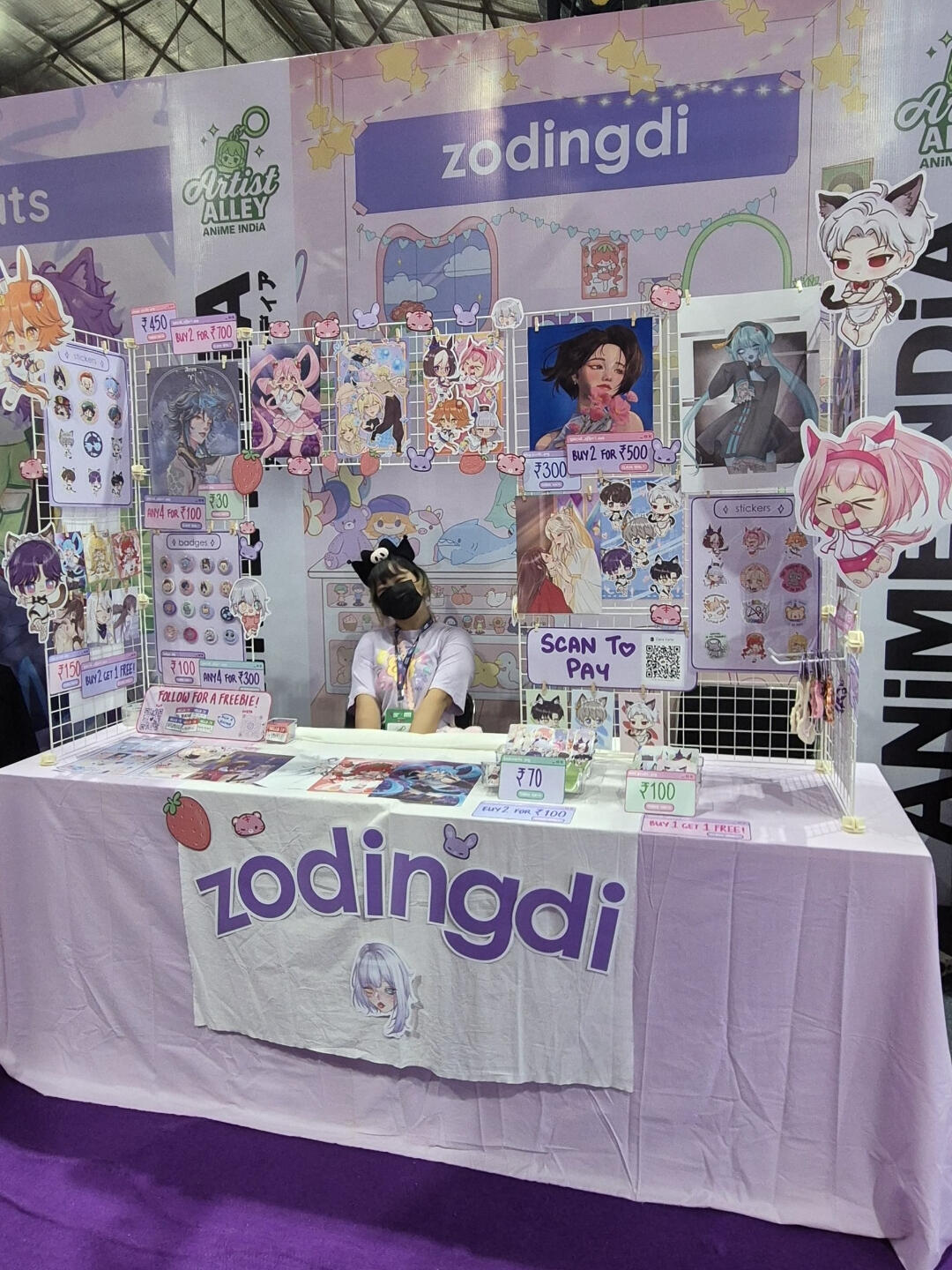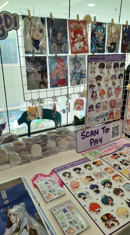 Hello! I'm Lala (zodingdi) and I've been actively exhibiting in artist alleys all over India since 2025! I exclusively feature 100% self-made artworks - both original illustrations and fanart of different anime, games, etc.here's some info about my work exhibited at fests, cons and artist alleys: