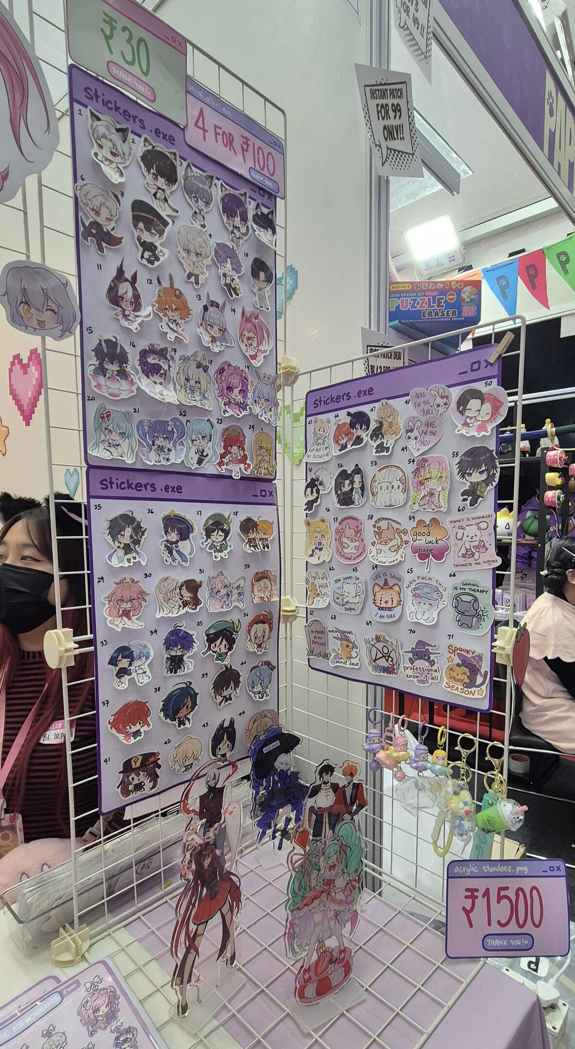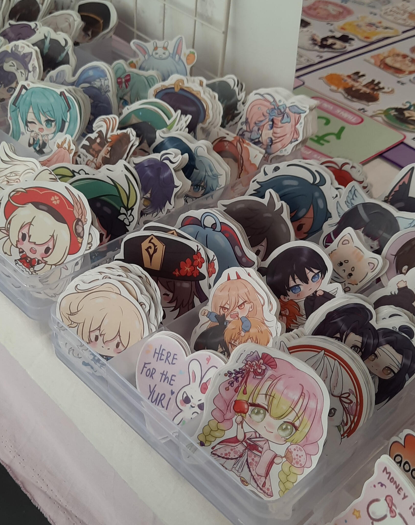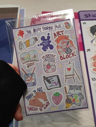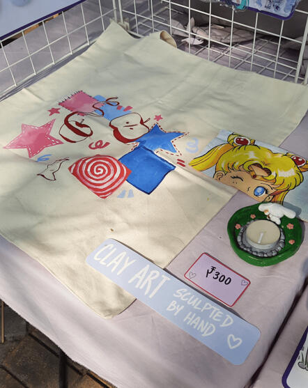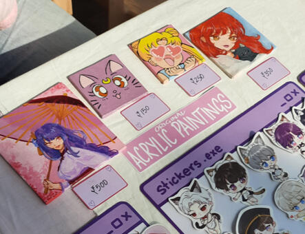 here's some irl pictures of my booth, setup and merch! ♡